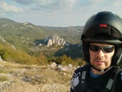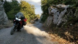 The TET in the Balkan countries was supposed to be a big part of the itinerary. I’d go with friends by car to Italy (Trieste) and go south from there. Unfortunately, the bike fell from the trailer and was left with 1 less front brake disk and bent handlebars. During the TET, the rear shock gave out spilling all the oil. So around Zadar i turned around to Trieste again to take the plane to Santorini 😉